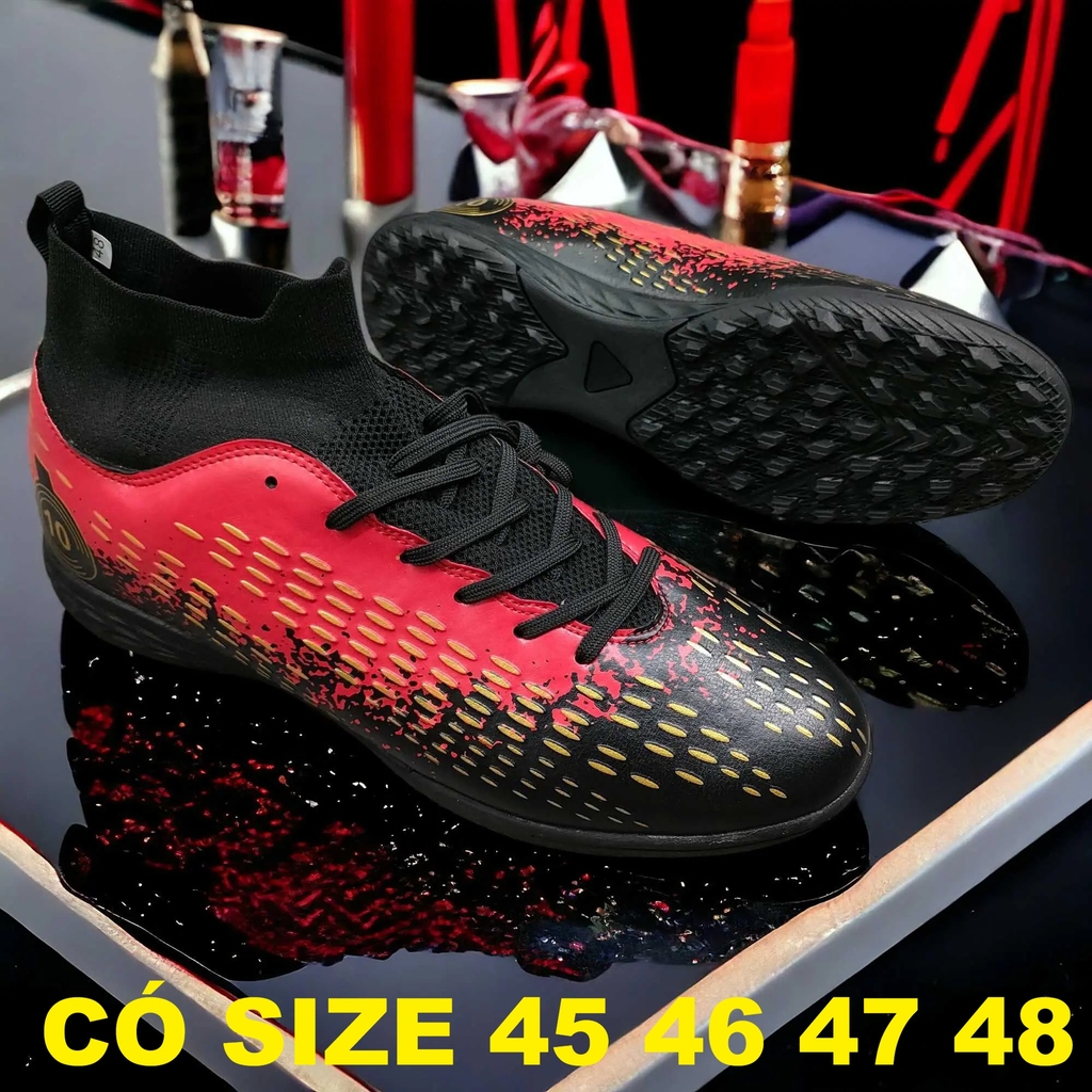 Giày Đá Bóng Nam Big Size (Size 45 46 47 48) - Đen Đỏ - BD.03