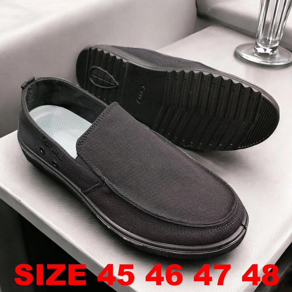 Giày Lười Vải Nam Big Size, Có Size Lớn (45 46 47 48) - ĐEN FULL - GLBS.03BB