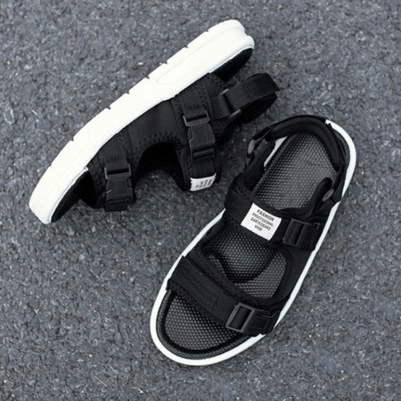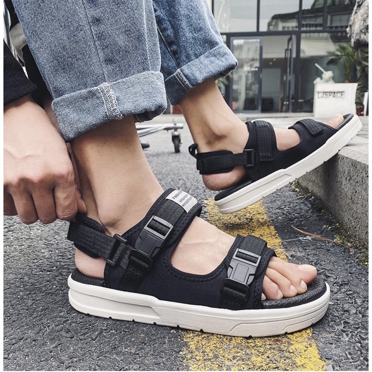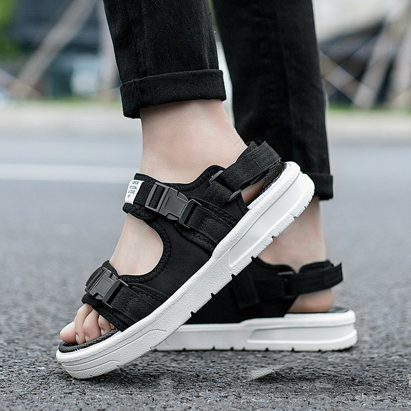Giày Sandal Big Size Nam 2 Quai Ngang 45 46 47 48 - ĐEN ĐẾ TRẮNG - 44UP.SD.05B
