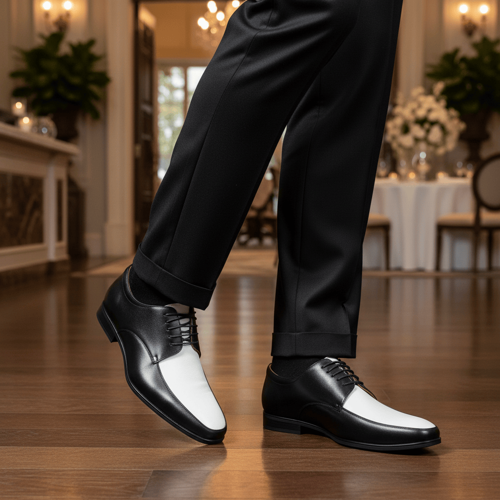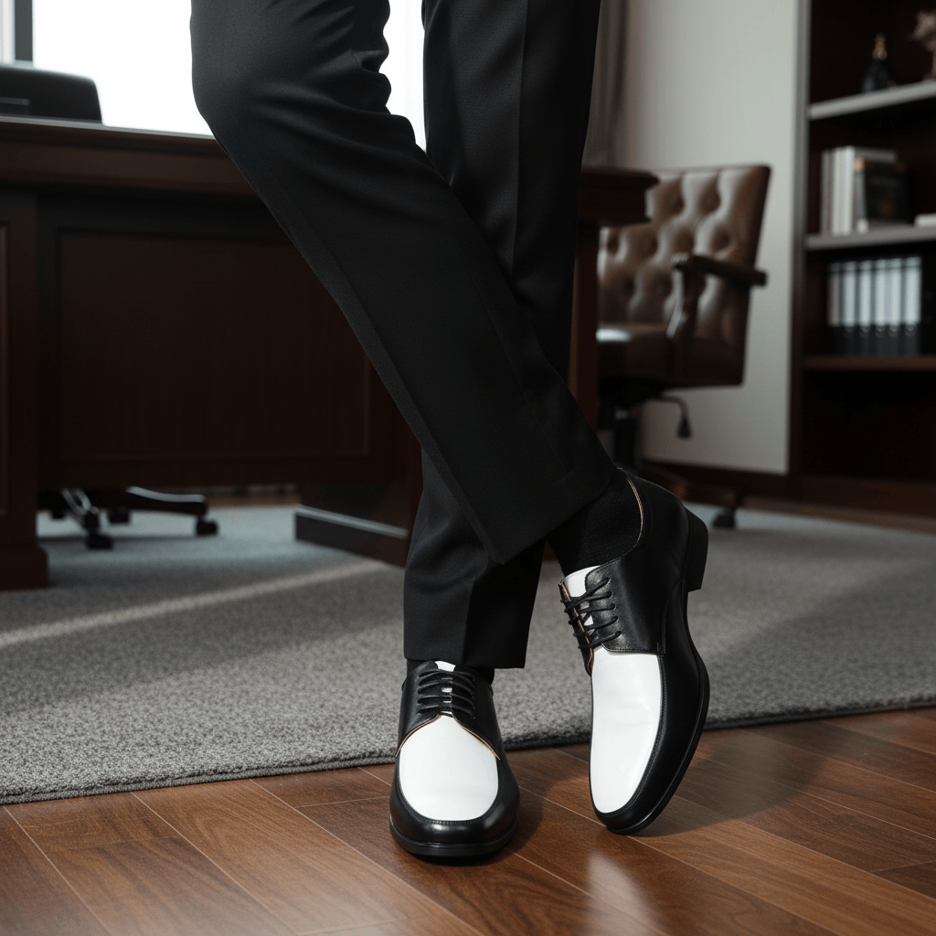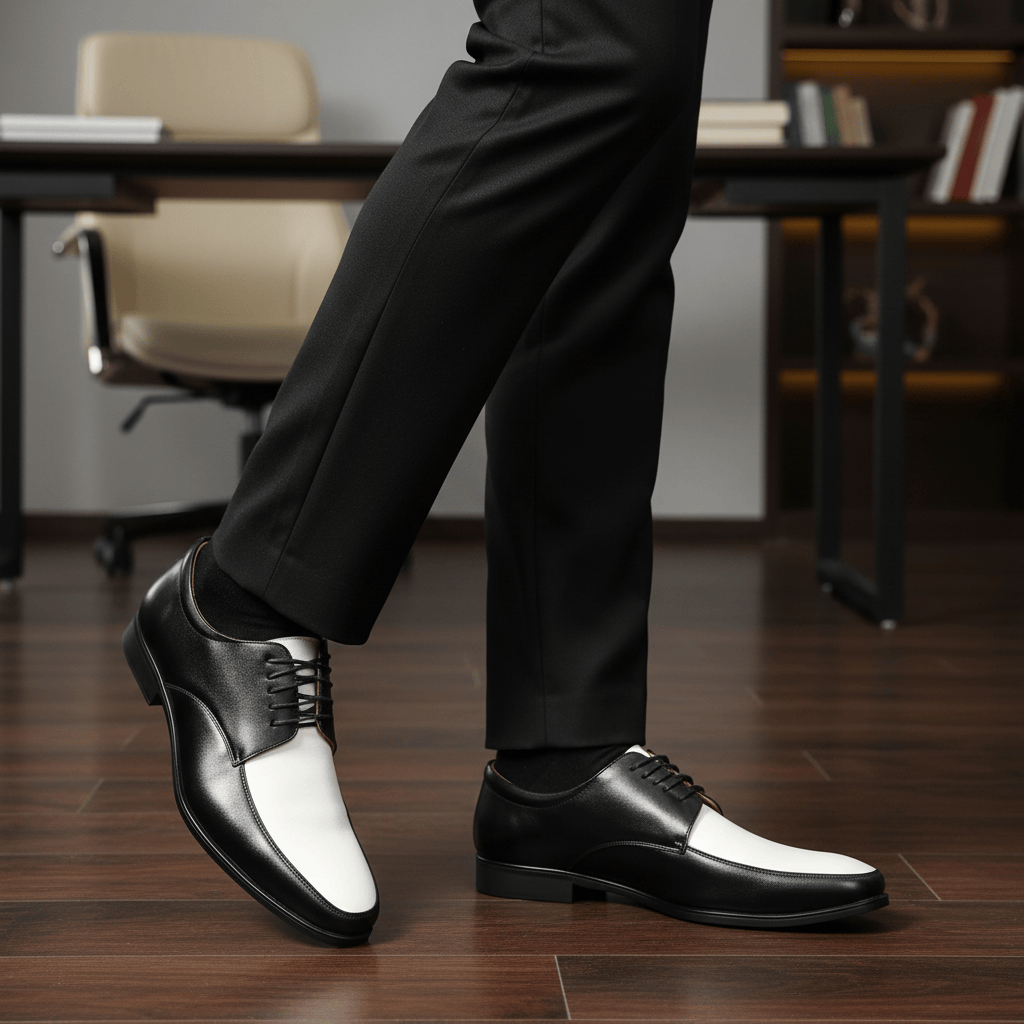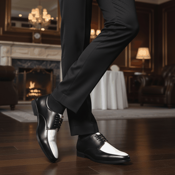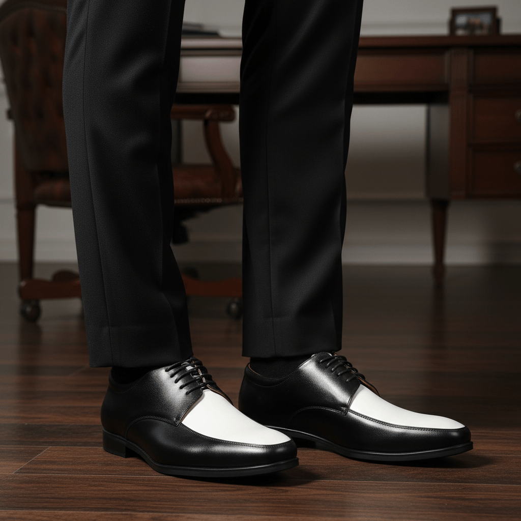 Giày Tây Nam Big Size - Da Thật, Có Size Lớn (45 46 47 48 49 50 51) - Đen Phối Trắng - GTDB.05W