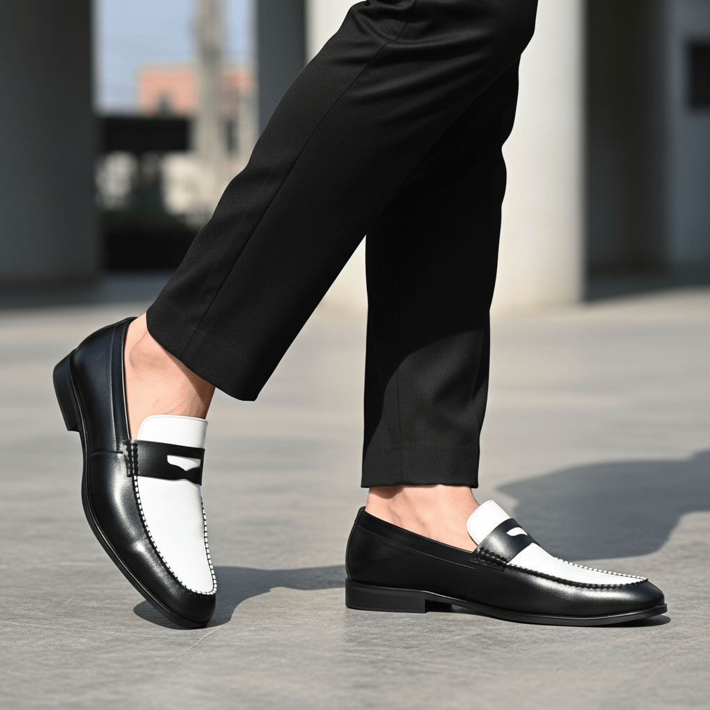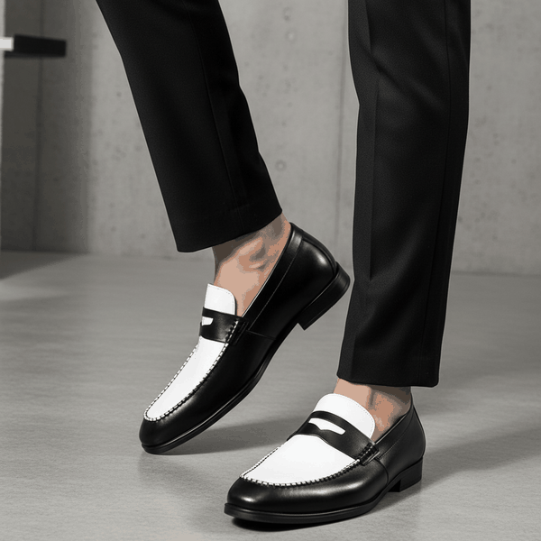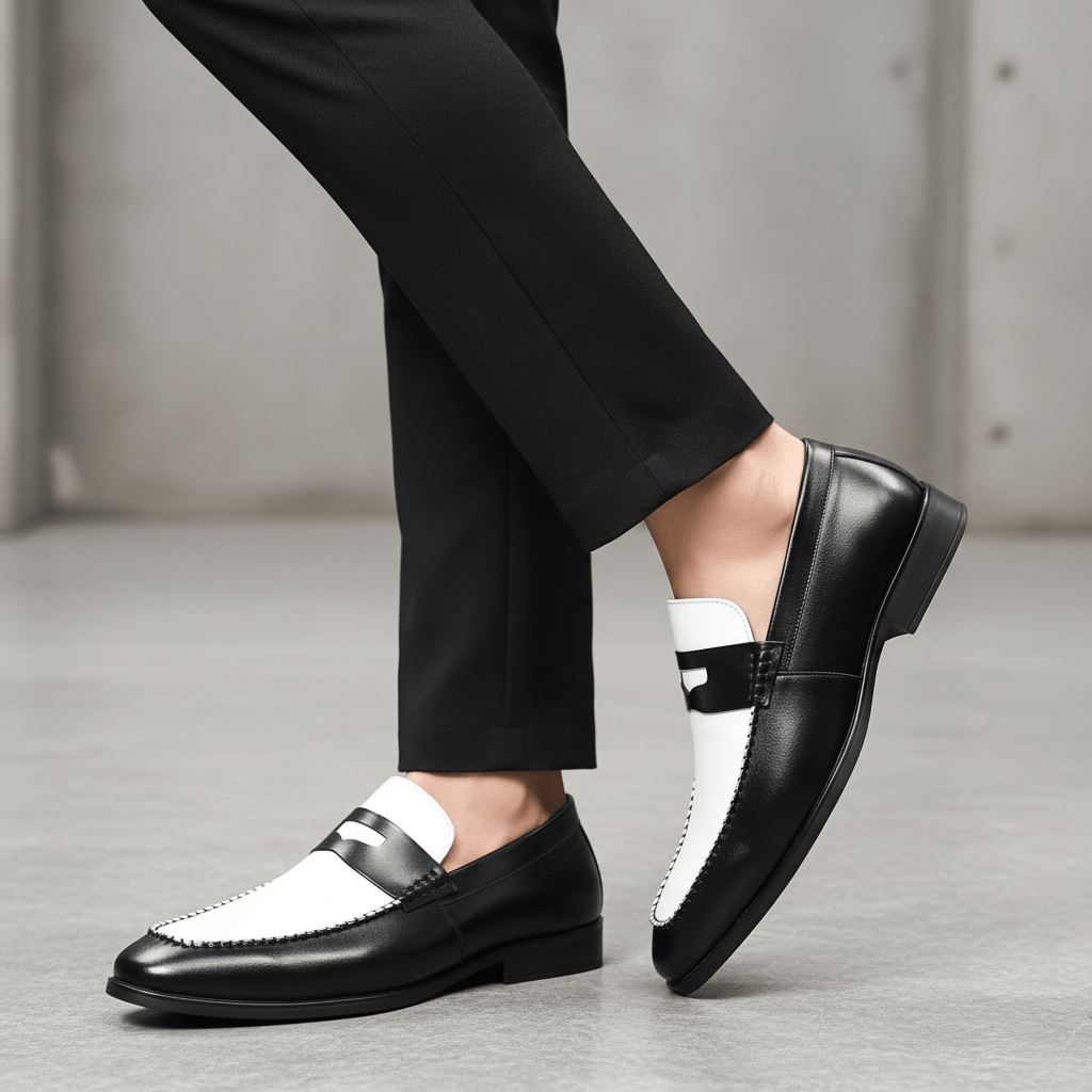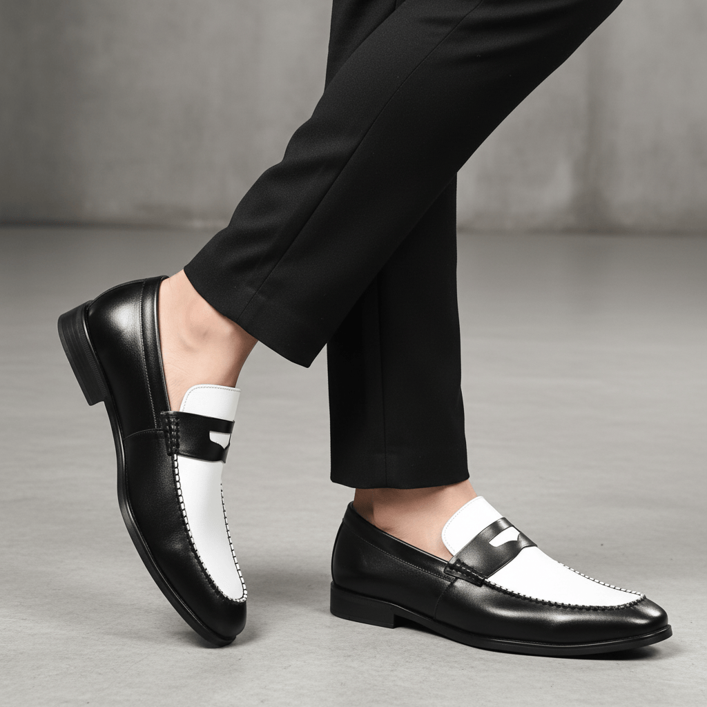 Giày Tây Xỏ Big Size Nam- Da Thật, Có Size Lớn (45 46 47 48 49 50) - Trắng Đen - GTXDB.02W