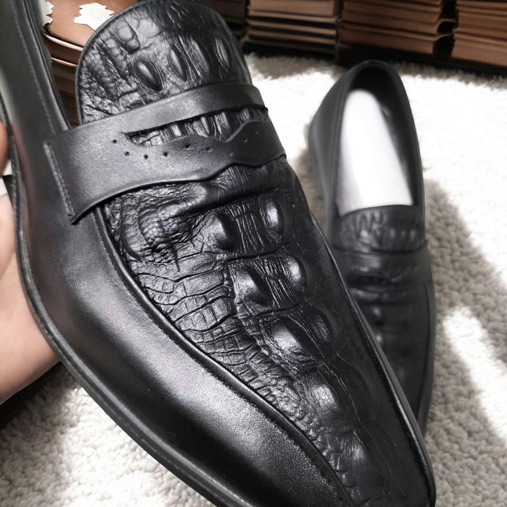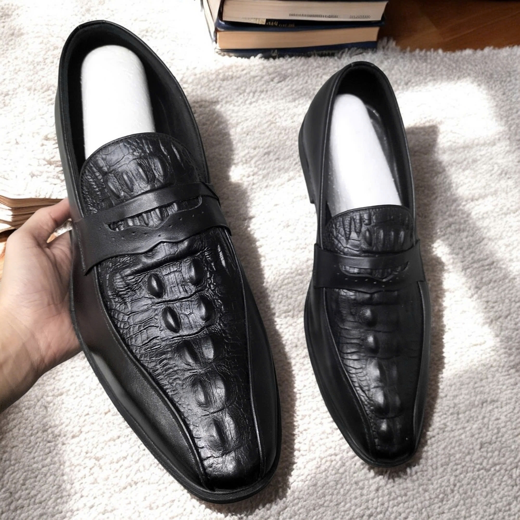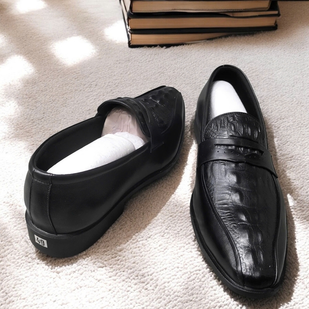 Giày Tây Xỏ Nam Big Size - Da Thật - Size (45 46 47 48 49) - ĐEN - 44UP.GTX.02B1